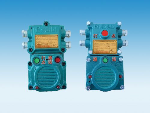 該產品集打點按鈕、防爆燈、防爆電鈴、三通接線盒為一體,有四個出線口,取代了三通接線盒,用高亮發(fā)光二極管和礦用防潮揚聲器取代了防爆燈和隔爆電鈴。